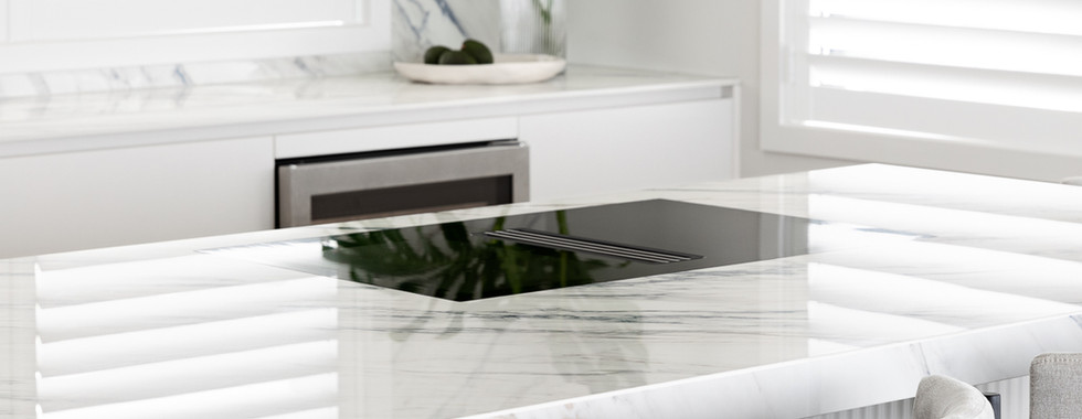 Central to our design concept is the integration of the kitchen island as the heart of the space, strategically positioned to maximize both ocean views and connectivity to the wider living space. By housing both the flush mounted cooktop and sink station within the island, we've created a dynamic focal point that encourages interaction and effortless flow between cooking and socializing.